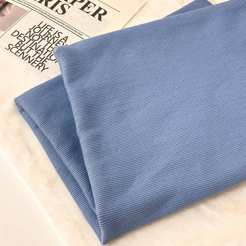 Untuk penampilan pakaian, kain regangan 2x2 poliester ribbed fabrik pakaian memberikan kesan tekstur yang memberi kesan secara visual. Struktur ribbed 2x2 memberikan kain tiga dimensi dan perubahan tekstur yang kaya, sambil menambah rasa reka bentuk pakaian. Kain struktur ini bukan sahaja meningkatkan keanjalan pakaian, tetapi juga membuat kesan visual pakaian lebih unik, memberikan pereka dengan ruang yang lebih kreatif untuk memenuhi keperluan pengguna untuk diperibadikan dan bergaya. Sebagai contoh, dalam pakaian kasual dan pakaian harian, menggunakan kain ini boleh membuat pakaian lebih moden dan menambah lapisan ke reka bentuk.